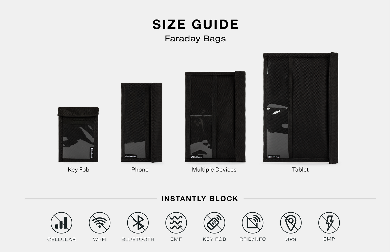 Silent Pocket® Faraday Technology Instantly Blocks: