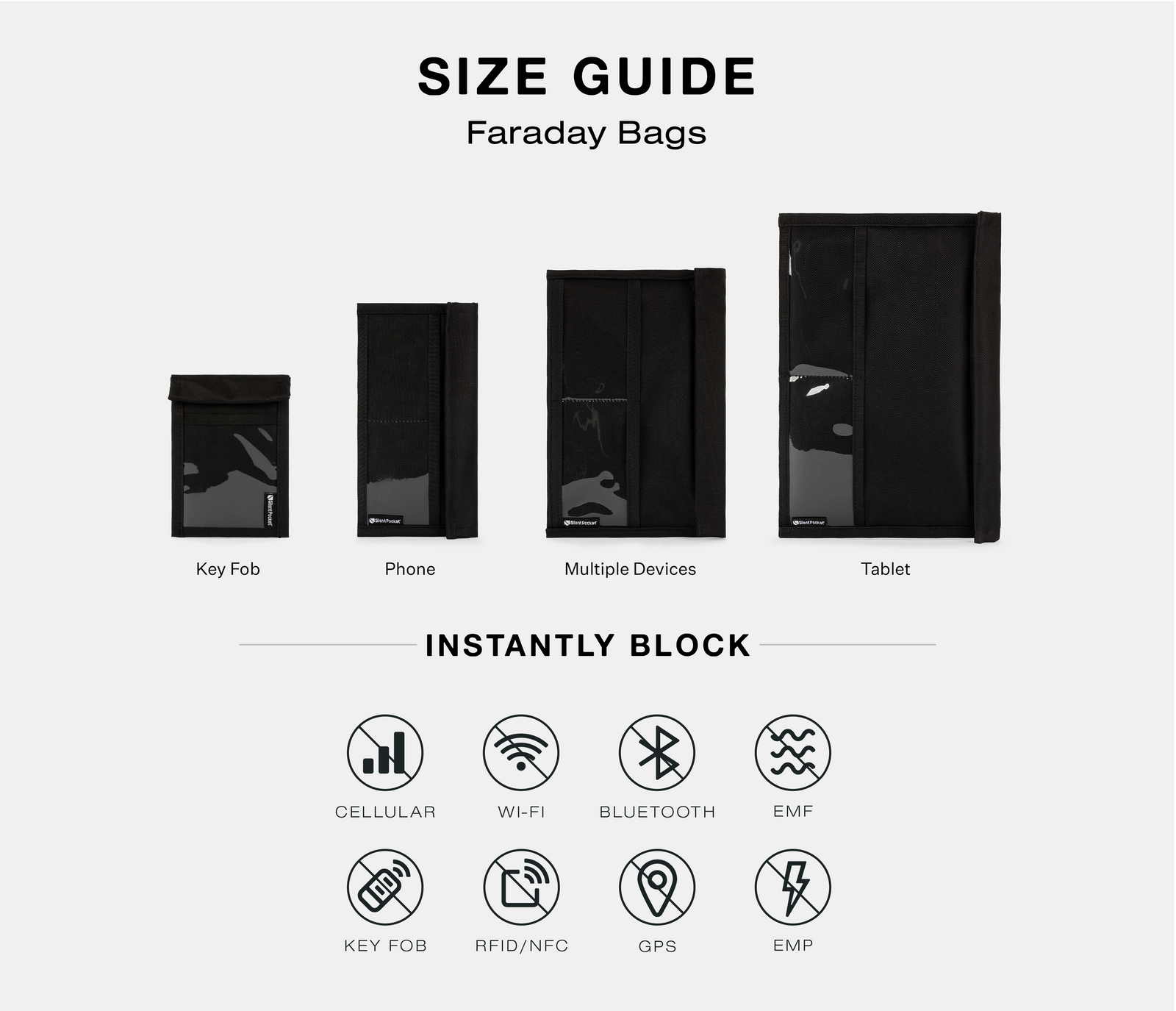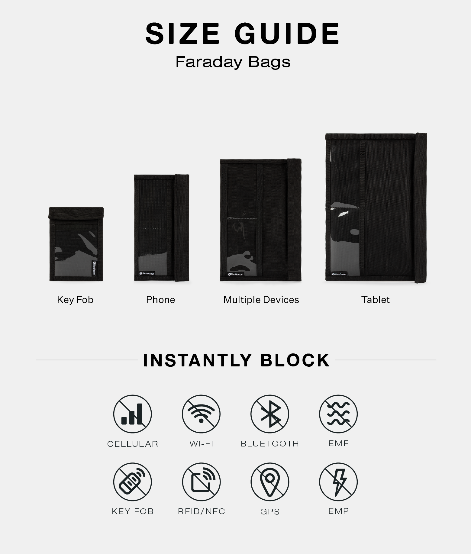 Instantly Block: Cellular, WiFi, Bluetooth, GPS, RFID, NFC, Satellite, Navigation, EMP, Solar Flare, Key Fob and EMF Radiation