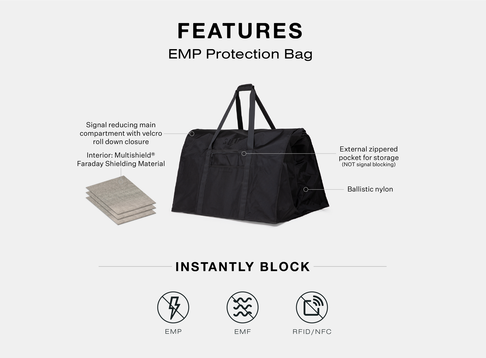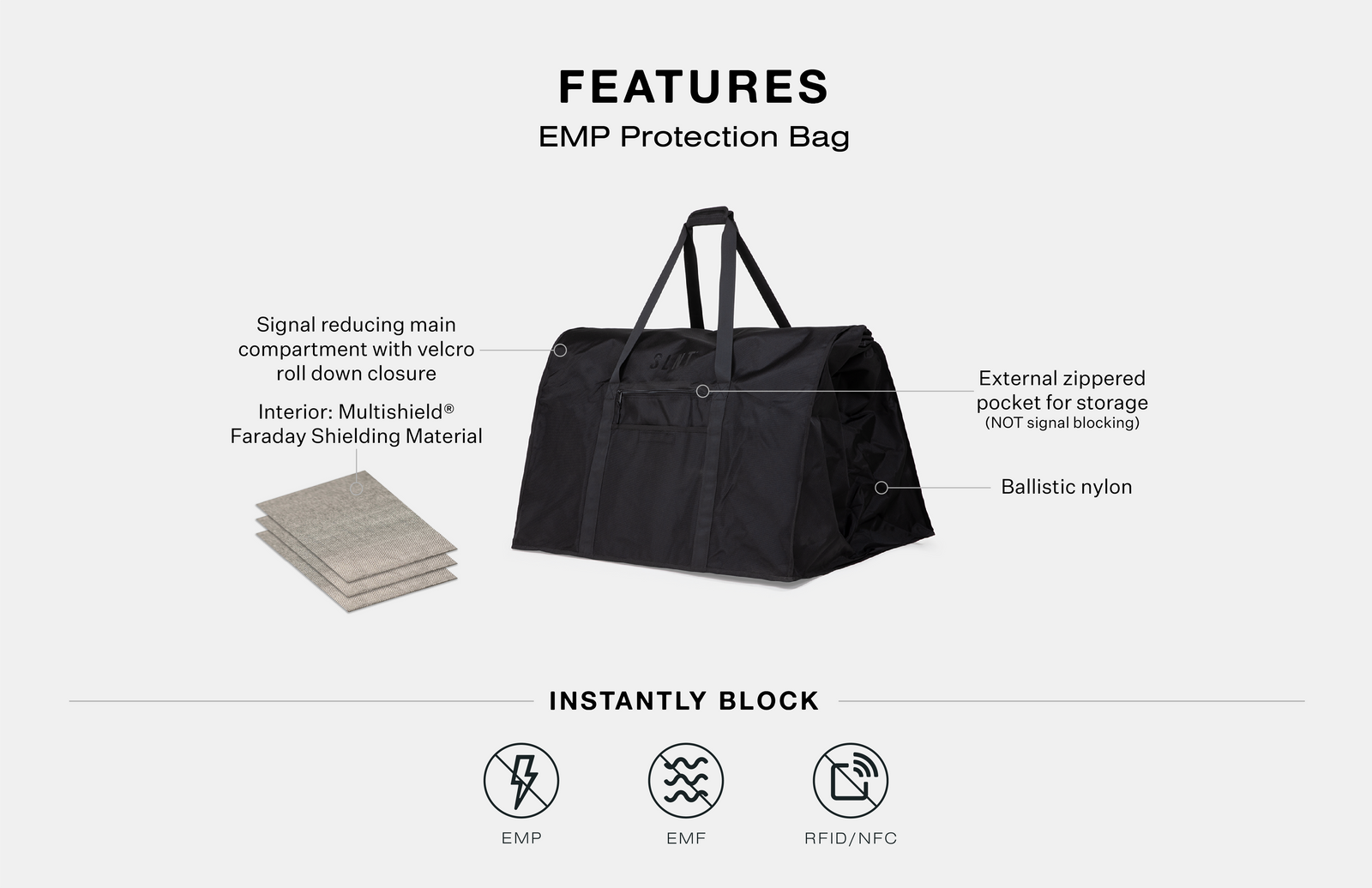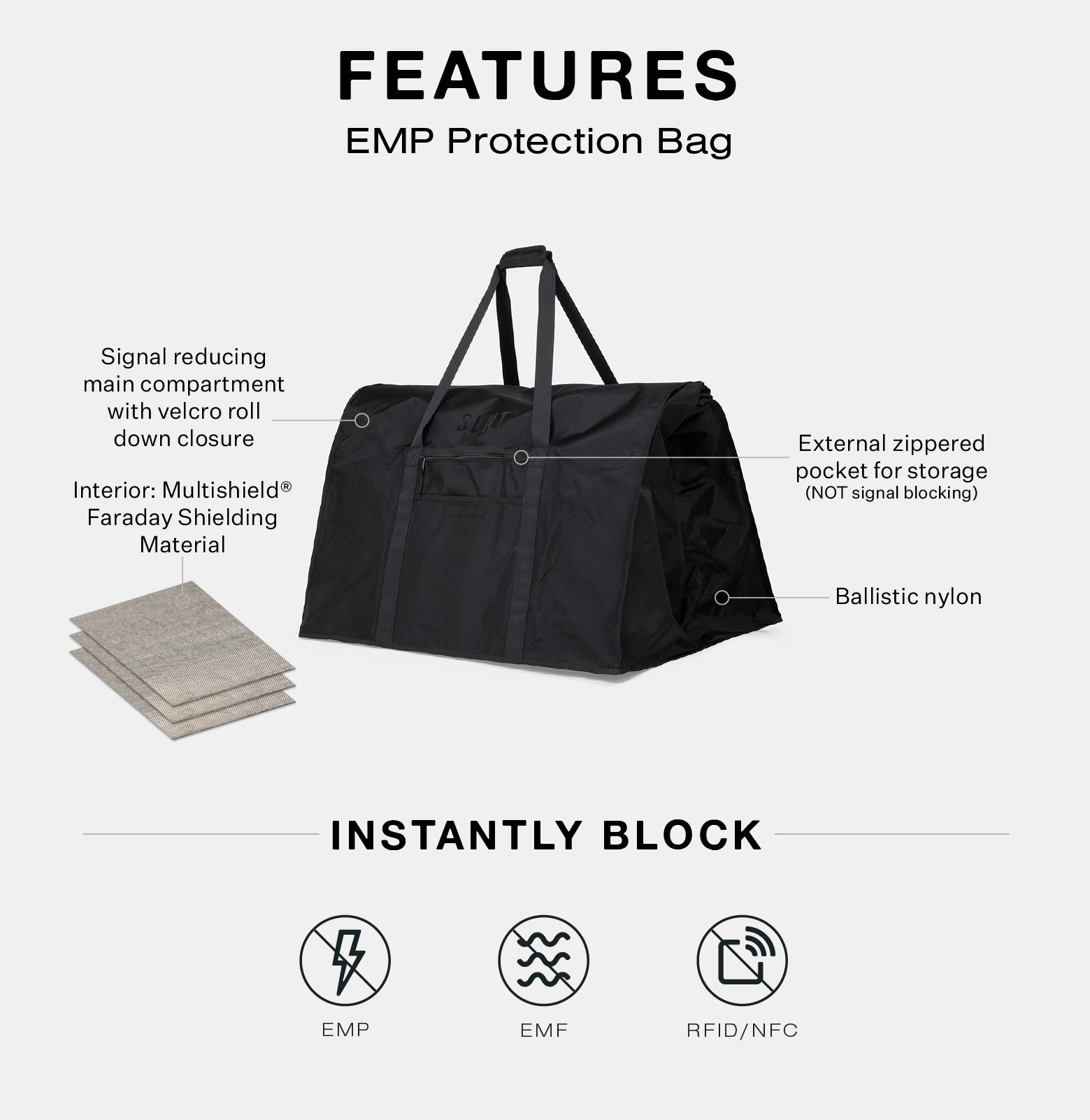This EMP Protection bag is specifically designed for storage of portable power banks, generators or similar-sized electronic devices. Its purpose is to provide protection against potential EMP or solar flare events. Equipped with our signal blocking Faraday technology, the bag creates a protective barrier that effectively blocks harmful electromagnetic interference, safeguarding your generator or electronics from damage.