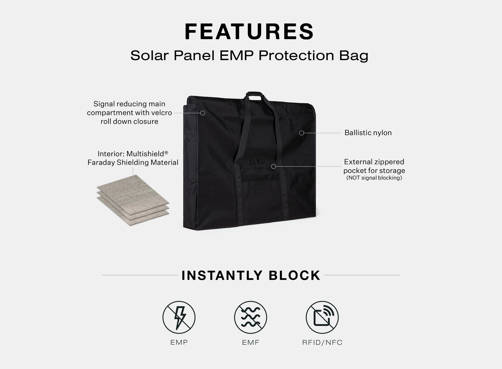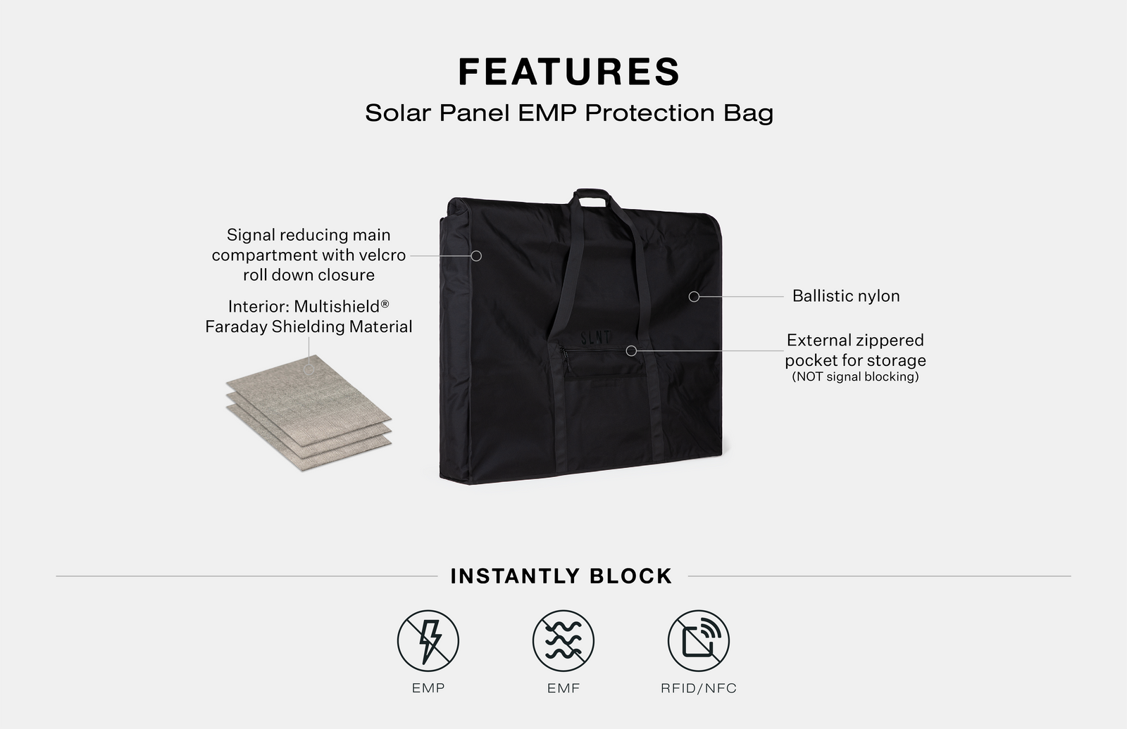 This EMP Protection bag is specifically designed for storage of solar panels. Its purpose is to provide protection against potential EMP or solar flare events. Equipped with our signal blocking Faraday technology, the bag creates a protective barrier that effectively blocks harmful electromagnetic interference, safeguarding your generator or electronics from damage.