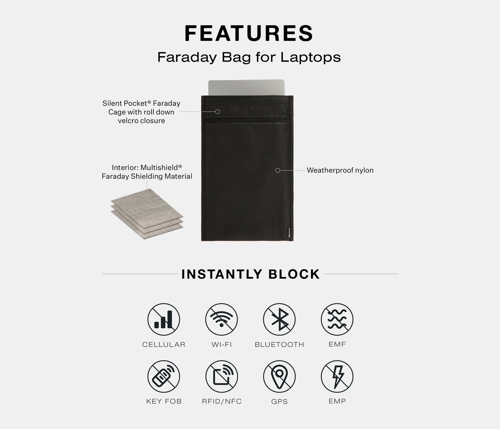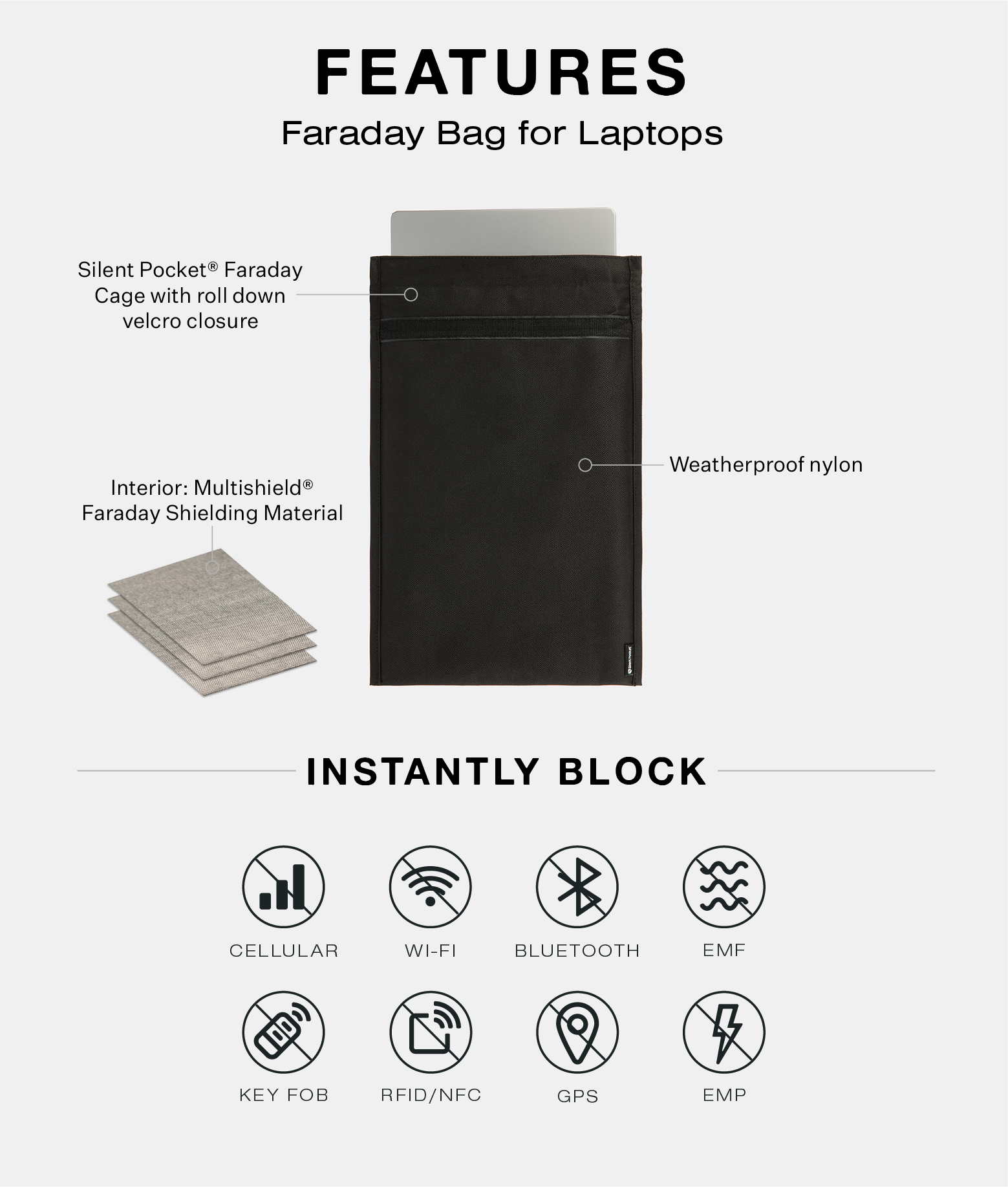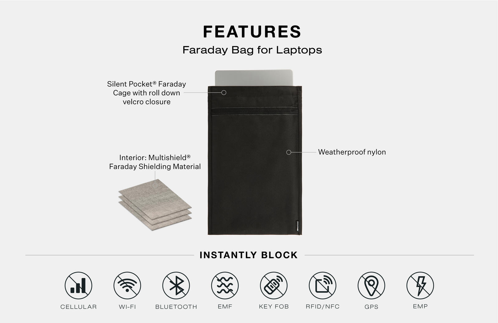 Silent Pocket® Faraday Technology Instantly Blocks: