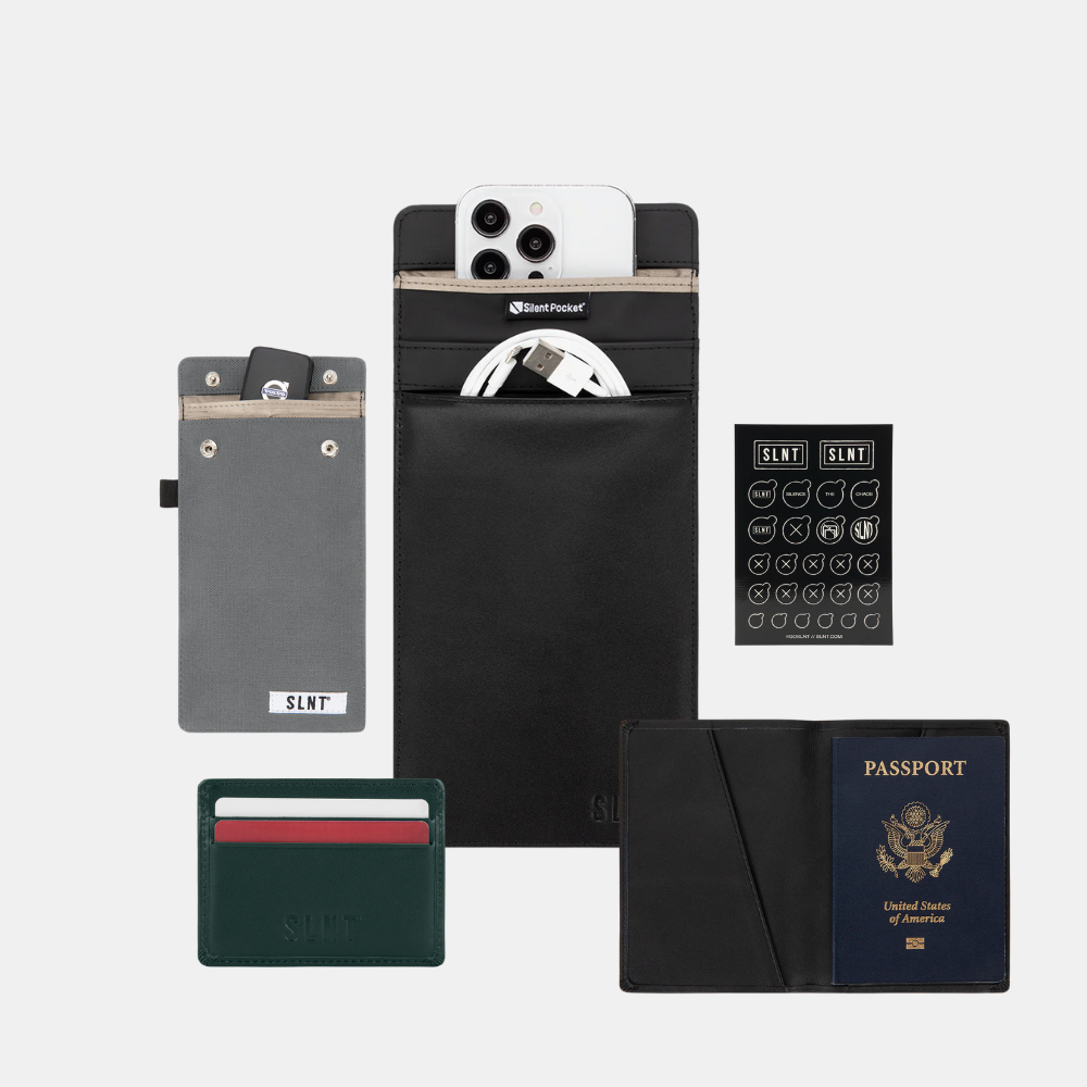 Together, this bundle locks down your most vulnerable access points—your phone, ID, credit cards, travel documents, keys, and cameras. Move through the world secure, unseen, and in control.
